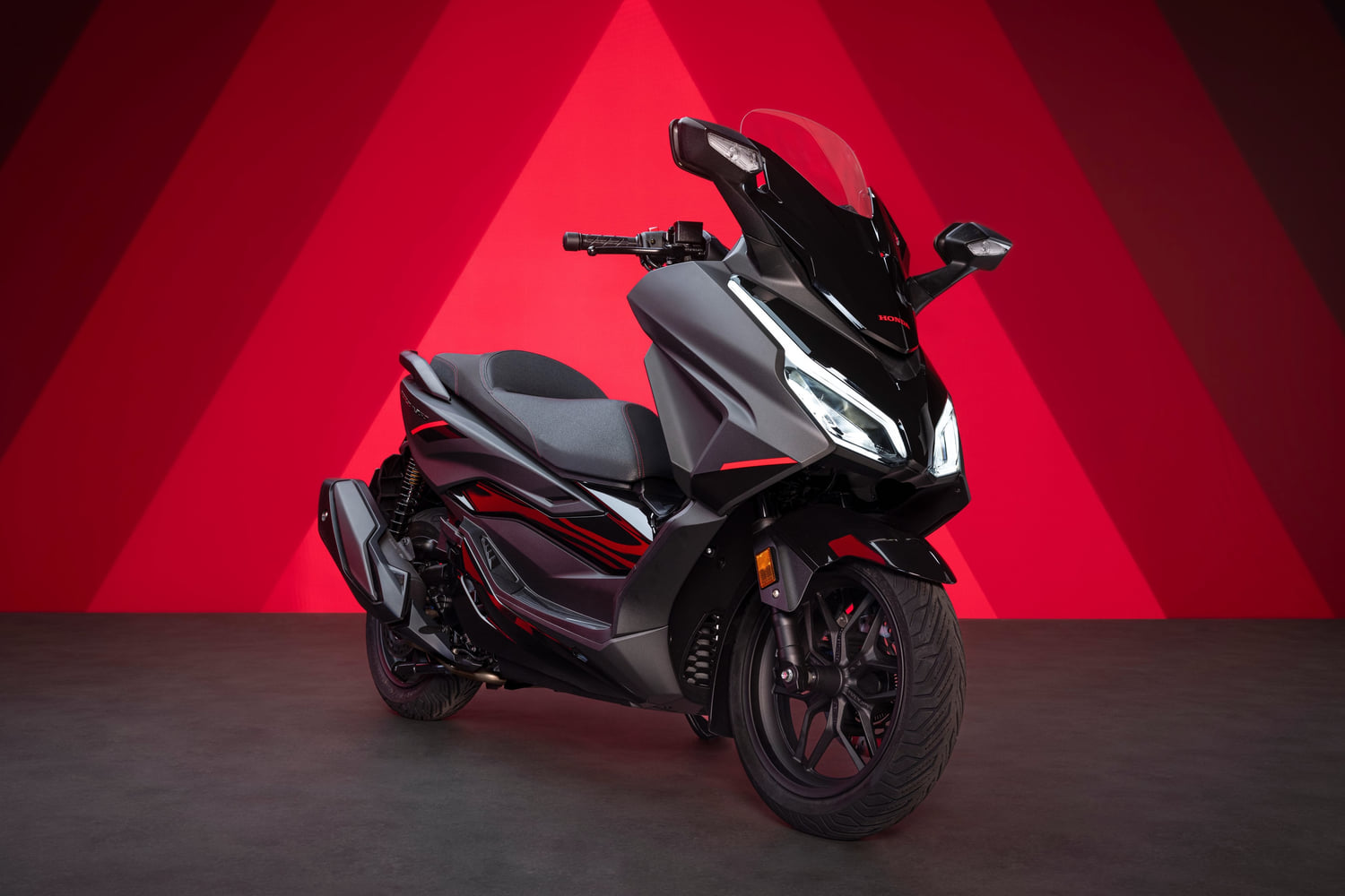 The 2025 Honda Forza 350 hits European stores in Carnelian Red Metallic, Pearl Falcon Gray, Pearl Nightstar Black, and Mat Pearl Cool White. The Forza 350 Special Edition comes in Mat Cynos Gray Metallic, with red accents.